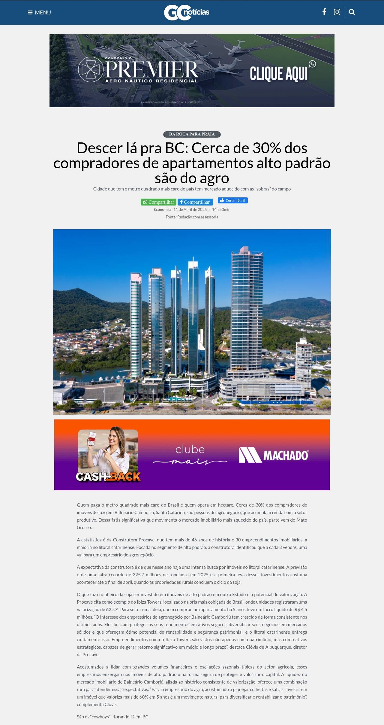 Descer lá pra BC: Cerca de 30% dos compradores de apartamentos alto padrão são do agro