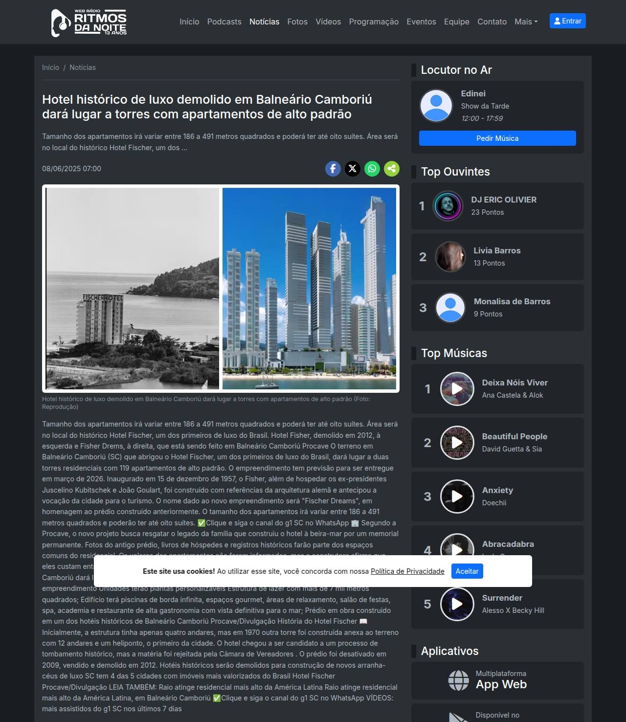 Hotel histórico de luxo demolido em Balneário Camboriú dará lugar a torres com apartamentos de alto padrão Ritmos da Noite